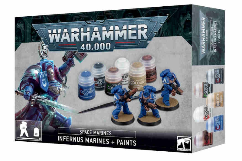 - 6 Farben a 12ml (Balthasar Gold, Macragge Blue, Corax White, Armageddon Dust, Agrax Earthshade, Abaddon Black )