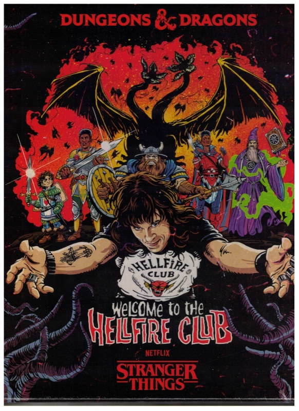 Experience Eddie Munson’s lost Dungeons & Dragons adventures and keep the flames of Hellfire burning in this collaborative 3–5 player game. With 4 adventures and hours of play possibilities, Welcome to the Hellfire Club invites you to gather the gang, crank up the volume to eleven, and choose how the story ends. This box includes: 4 adventure booklets, a Dungeon Master’s screen; a double-sided Hellfire Club poster; 91 cards for spells, magic items, and monsters; 72 tokens for player characters and monsters; 2 double-sided poster maps; 15 character sheets; 4 in-world handouts; a combat tracker notepad, and a set of 11 dice.
