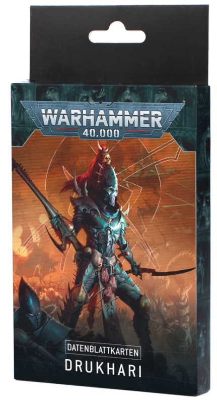 Kartenset mit Datenblättern der Drukhari zur Verwendung in Wrhammer40K Spielen inkl. jener, die eigens für die Kampfpatrouille entwickelt wurden, sowie eine Armeeregel, die die charakteristische Art der Kriegsführung dieser Fraktion zum Leben erweckt.
