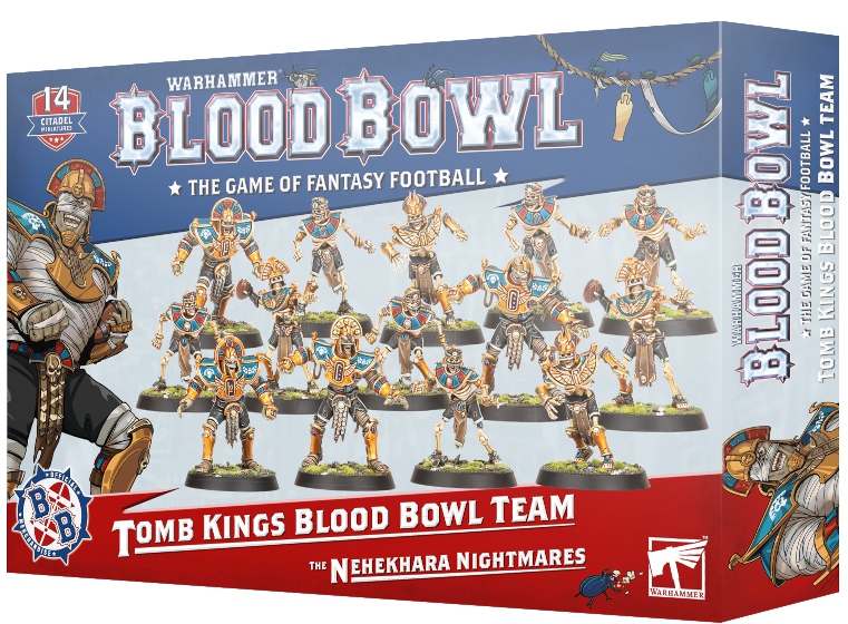 Das Blood Bowl Untoten Team (11/2025). Inhalt: 2 Blitzer, 2 Thrower, 4 Tomb Guardians, 6 Linemen, Blood Bowl Markers & TombKingsMarker und Bälle.