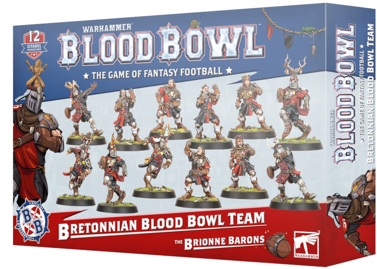 Das Blood Bowl Bretonen Team (11/2025). Inhalt: 2 Blitzer, 2 Thrower, 2 Catcher, 6 Linemen, Blood Bowl Markers & TombKingsMarker und Bälle.