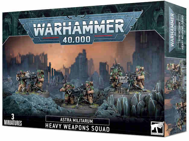 Mit dem Inhalt dieser Box lassen sich 3 Waffenteams mit schweren Waffen zusammenbauen (Mörser.Schwerer Bolter.Laserkanone oder Raketenwerfer)